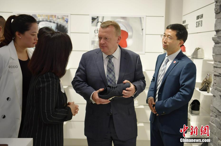 5月2日,丹麥?zhǔn)紫嗬鼓律构涮爬铮哌M(jìn)1963年創(chuàng)立于丹麥的“愛(ài)步”鞋類品牌店了解情況。當(dāng)日,應(yīng)中國(guó)國(guó)務(wù)院總理李克強(qiáng)邀請(qǐng),丹麥?zhǔn)紫嗬鼓律D行抵達(dá)中國(guó)成都,開(kāi)始對(duì)中國(guó)進(jìn)行正式訪問(wèn),拉斯穆森此訪系其2015年當(dāng)選首相以來(lái)首次訪華,其訪問(wèn)首站就來(lái)到四川成都。中新社記者 劉忠俊 攝