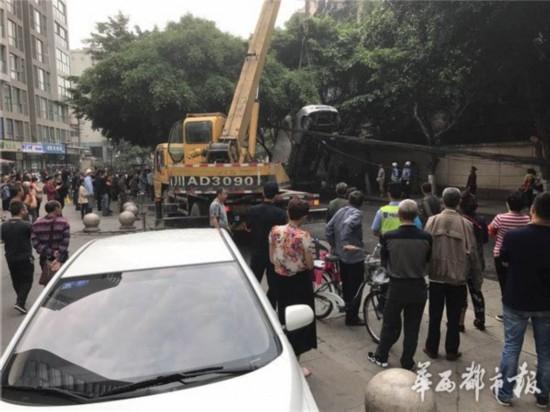 5月10日早上,成都高升橋北街,一輛貨車玩起“特技”,車頭掛在線纜上,四輪騰空,造成道路擁堵,索性無人員傷亡。隨后,記者從成都交警一分局獲悉,該事故的罪魁禍首,是掉落的通訊線纜。來源:華西都市報