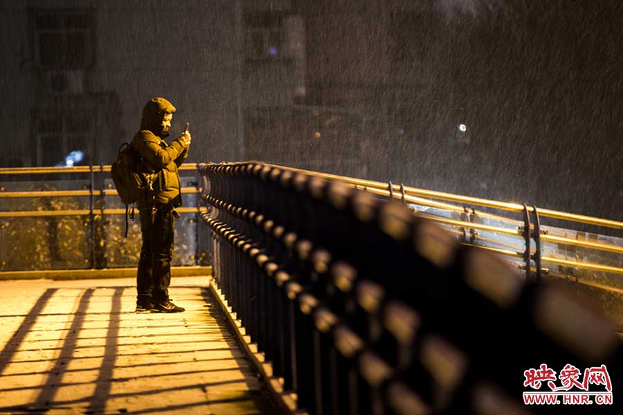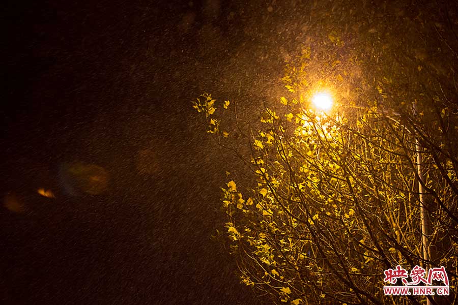 晚上十點(diǎn)鐘的時候雪花不大但是很密集