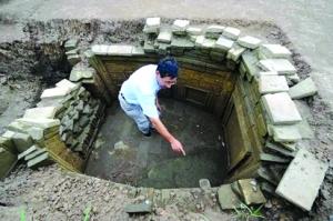考古工作者在位于南水北調(diào)中線工程源頭淹沒區(qū)的河南省淅川縣盛灣鎮(zhèn)發(fā)現(xiàn)全崗聚落大型遺址,這是考古發(fā)現(xiàn)的一處磚雕墓。