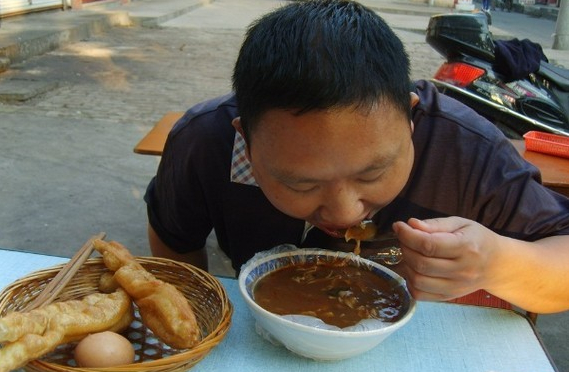在河南各地,來喝胡辣湯的客人多是周圍街坊鄰居,于是胡辣湯店又變成了鄉(xiāng)親們的集會場所,用河南話這叫“趕飯場兒”。老李家的二閨女嫁到了城里,王家的老么考上了大學(xué),東頭的老楊頭前幾天沒啦……這些信息隨著“刺—溜”聲得以交流。