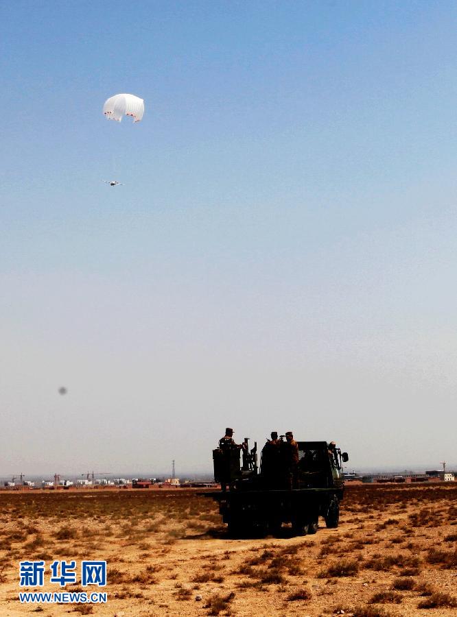 某型測繪無人機(jī)返回地面時(shí),自動打開降落傘,空降到指定地域(4月16日攝)。新華社發(fā)(黃寶峰 攝)