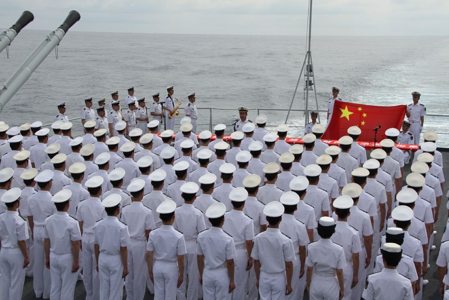 蔚藍(lán)的天空、湛藍(lán)的大海,當(dāng)金色的陽光鋪滿艦體,軍樂隊(duì)奏響雄壯的中華人民共和國國歌,在后甲板整齊列隊(duì)的“鄭和”艦官兵代表舉起右手,面向國旗莊嚴(yán)宣誓,表達(dá)他們對(duì)人民海軍的忠誠和熱愛。