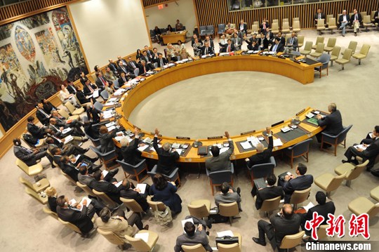 聯(lián)合國(guó)安理會(huì)21日一致通過決議,決定設(shè)立聯(lián)合國(guó)敘利亞監(jiān)督團(tuán)(聯(lián)敘監(jiān)督團(tuán)),初期部署300名非武裝軍事觀察員,最初任期為90天。中新社發(fā) 孫宇挺 攝