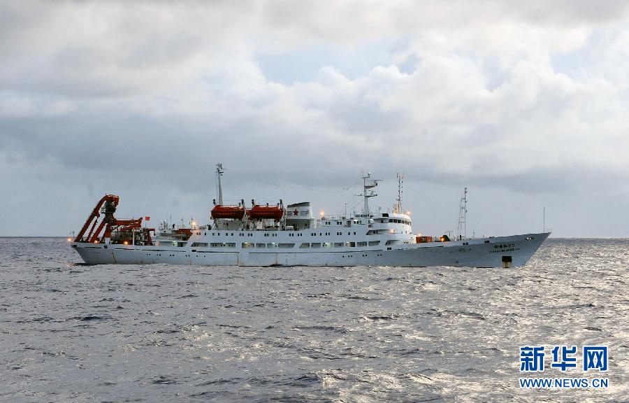 6月19日,成功完成下潛任務(wù)的“蛟龍”號(hào)母船“向陽紅”號(hào)在海上航行。