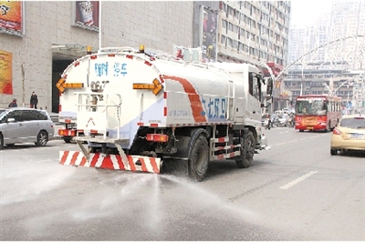 本報(bào)訊 隨著氣溫慢慢回升,天氣也變得干燥起來(lái)。昨日上午,記者在航海路看到,二七區(qū)新投入使用的4輛新式灑水車(chē)開(kāi)始上路進(jìn)行道路降塵作業(yè),減少城市污染。