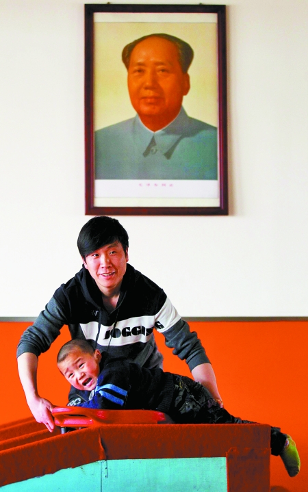 陪這些孩子進(jìn)行體能訓(xùn)練女老師受不了,因此康復(fù)中心里有許多“男阿姨”。