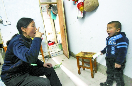 4歲的劉浩是個(gè)“小雨人”,媽媽在他生病后離家出走,奶奶沒有放棄。來鄭4個(gè)月的訓(xùn)練小有成果,對著奶奶,小家伙已能清晰地喊出“媽”。首席記者陳曉東攝