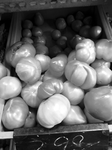 在市區(qū)其他菜市場,不少攤點上也都是這樣的畸形果。超市工作人員說,最近批發(fā)來的番茄都這樣,價格也不便宜。