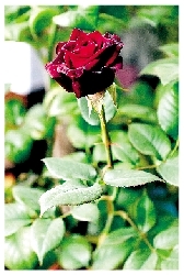 玫瑰 小葉5~9片,葉片較厚,葉面有皺紋(葉脈凹陷),葉背附一層白霜似的刺毛,枝刺多密?;ǘ鄶?shù)為紫紅色、單瓣,果實肉質(zhì),花托肥厚。