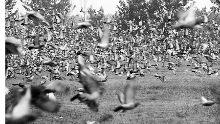 昨日早上六點(diǎn),在省體育中心,第13屆信鴿國家賽正在舉行。近8萬只來自全國15個(gè)省市的65家單位的信鴿隨著一聲槍響,開始了馬拉松式回巢。