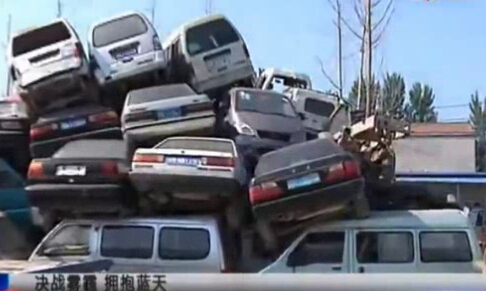 商丘現(xiàn)場銷毀400多輛黃標(biāo)車