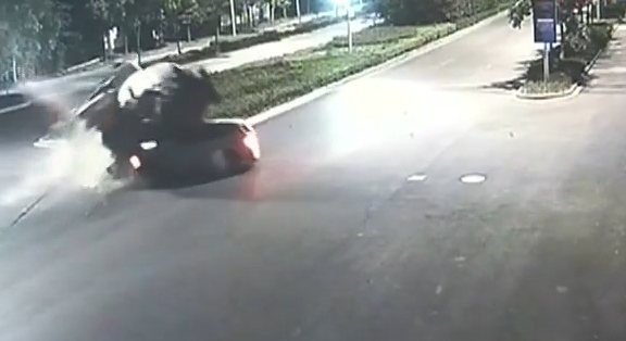槽罐車(chē)側(cè)翻壓扁寶馬車(chē)