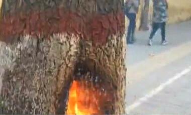 鄭州:行道樹(shù)著火 大伙來(lái)?yè)渚?/p> 12/06 10:13