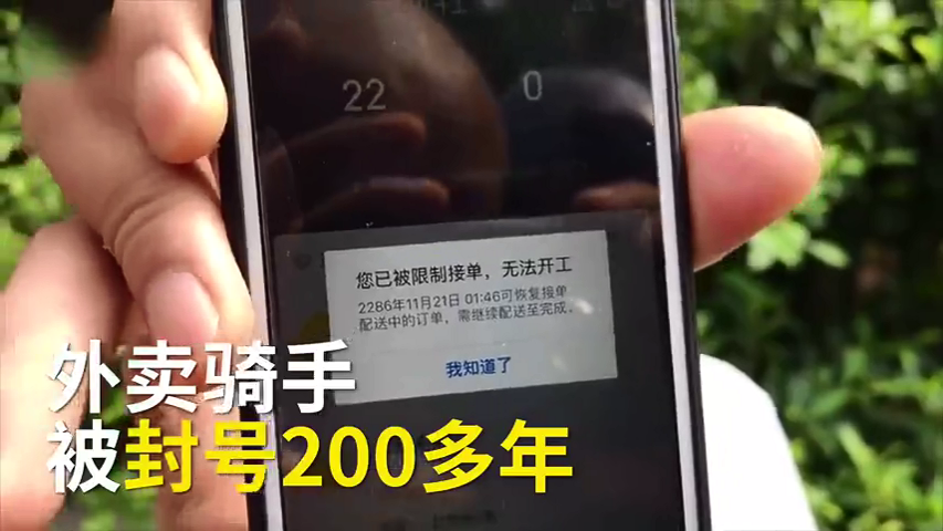 外賣小哥休息3天 被平臺(tái)封號(hào)268年