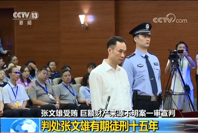 張文雄受賄 巨額財產(chǎn)來源不明案一審宣判 判處張文雄有期徒刑十五年