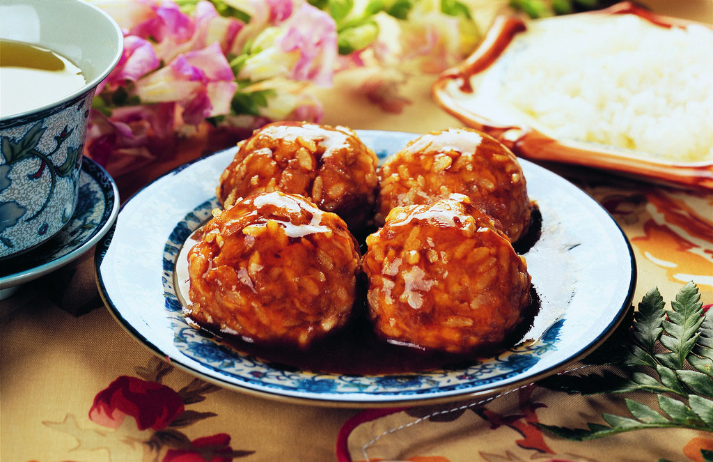 四喜丸子是一道知名豫菜,是以精瘦肉及碎饅頭等為主料經(jīng)油炸八成熟,放入碗內(nèi)加高湯蒸熟即成,每碗放四個。由于油炸過后又加水蒸過,吃起來鮮而不膩,酥嫩爽口,香味濃郁又利于消化。