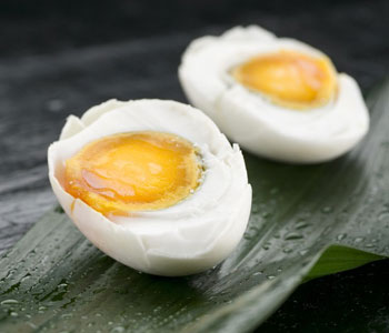取花椒、桂皮、茴香、生姜、精鹽,用等量水煮沸20分鐘,倒入一瓷壇內(nèi),將洗凈的鴨蛋泡入,封嚴壇口,40天后即可煮食。這種鴨蛋香味濃郁,微咸可口。