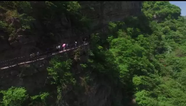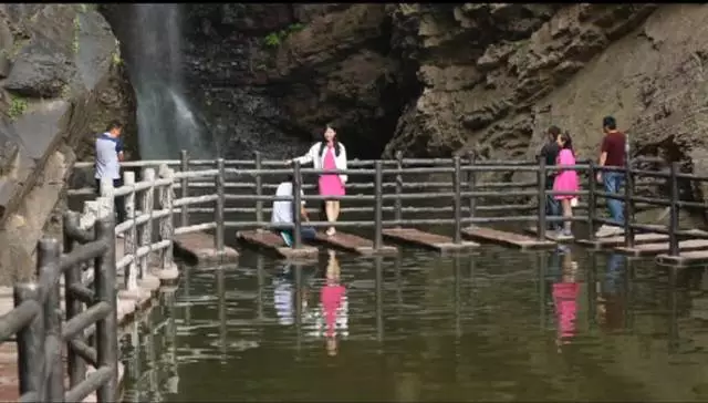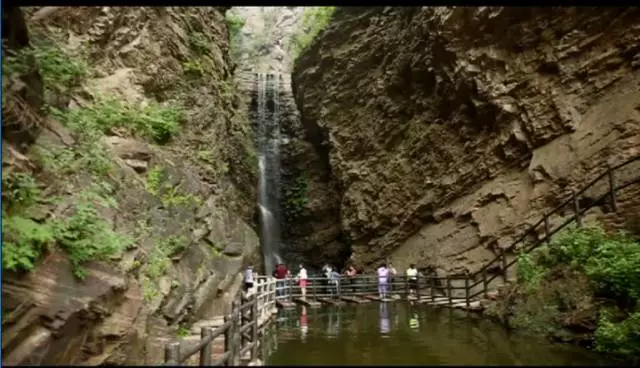 瀑布高達(dá)100余米,從井口水簾洞落下,形成了自然奇觀,漫步在棧道之上,便有穿云破霧之感。在這里,遠(yuǎn)望可領(lǐng)略高山整體氣勢(shì)之壯美,近觀可品察,山石樹木形色質(zhì)紋之奇秀。