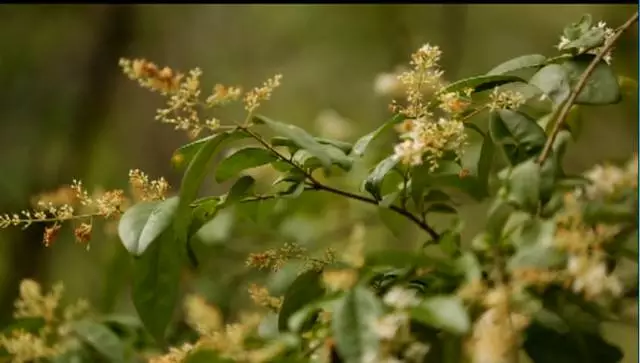 看到這棵樹了沒有,據(jù)說這個(gè)葉子有個(gè)奇特的味道,是一股橘子味,在這山上還有很多珍貴野生的樹種,漫山遍野一股清香襲來,再往前走就可以看到天井了,天井四面峭壁,犬牙交錯(cuò)高深莫測(cè)。