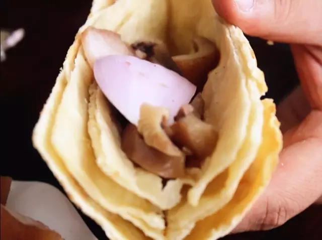 用手一掰放入幾片切好的肉,懂行的吃貨還要再放片洋蔥,解了鹵肉的油膩也添了清香,一口下去滿滿都是脆軟香鮮,炎熱的夏天吃一個(gè)很是開(kāi)胃、