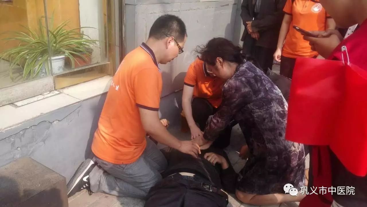 “我是護士,讓我來!”喬紅連忙上前,向?qū)Ψ奖砻孀约菏庆柫x市中醫(yī)院護士后,趕緊上前查看,發(fā)現(xiàn)頸動脈搏動微弱,橈動脈消失,呼吸輕微,雙目上翻,瞬間大動脈搏動消失,多年的臨床經(jīng)驗判斷為“心臟驟?!保闆r十分危急,當即把暈倒老人放平,喬紅顧不上自己穿著短裙行動不便,迅速雙膝跪地開始實施徒手心肺復蘇。同時,讓圍觀群眾撥打急救電話。