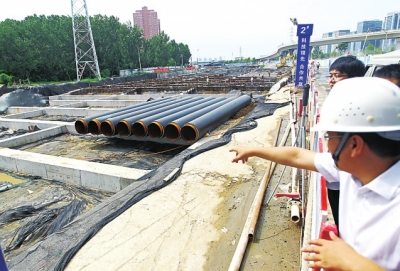 昨天,記者來(lái)到鄭州市東三環(huán)(107輔道)快速化工程鄭州東站附近的施工點(diǎn),金水東路到商鼎路之間,正在建一條寬37米的隧道(圖中前方為南方)。