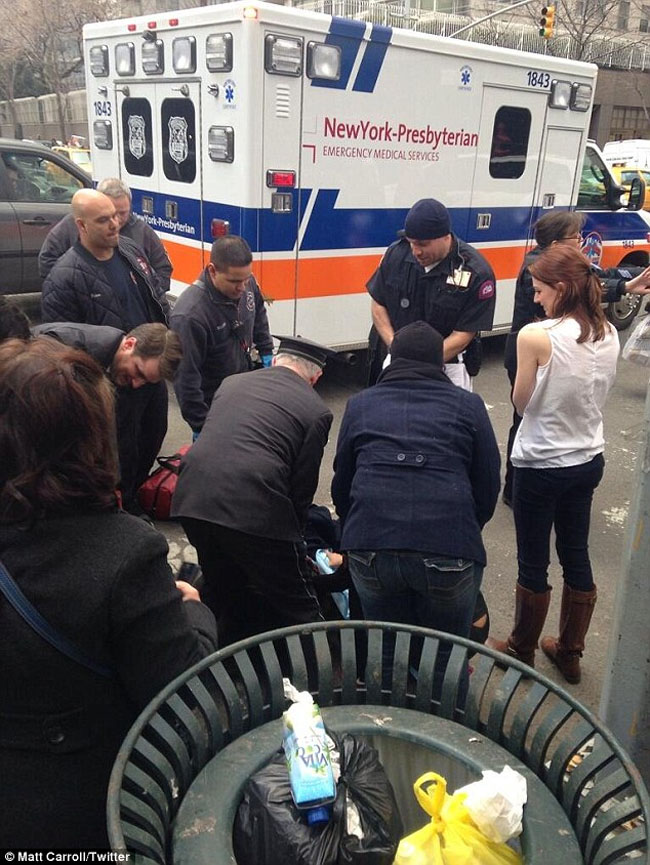 圍觀的群眾迅速用自己的圍巾和外套將嬰兒包住。隨后救護(hù)車趕到,母女二人已經(jīng)被送往附近LenoxHill醫(yī)院,均平安。據(jù)悉,這是麥考特的第三個(gè)孩子。