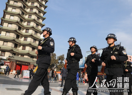 從1月31日起開始至大年初八,鄭州特警將奔赴市區(qū)各大廣場和主干道開展武裝巡邏,為綠城守歲。