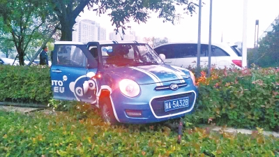 沖進綠化帶的共享汽車