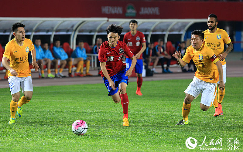 人民網(wǎng)鄭州4月10日電(霍亞平)4月9日晚,2016年中超聯(lián)賽第四輪在鄭州航海體育場展開一場較量,由河南建業(yè)坐鎮(zhèn)主場迎戰(zhàn)江蘇蘇寧。上半場雙方各自有威脅射門,但均未能將機會轉(zhuǎn)化成進球。第86分鐘,江蘇蘇寧吉翔打進全場比賽唯一進球,建業(yè)主場0-1不敵江蘇蘇寧。
