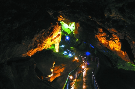 您不必擔心洞內(nèi)空氣凝聚、沉悶不堪,大自然的鬼斧神工定是完美無缺——洞內(nèi)有一處天然通風口直穿山體,同外界相連,山風灌入,涼爽舒適。漫步洞內(nèi),細心的您會感受到絲絲清涼游弋在身邊,似湖中漣漪,蜻蜓點水,盡管就那么一下下,足以令人心曠神怡,陶醉其中!